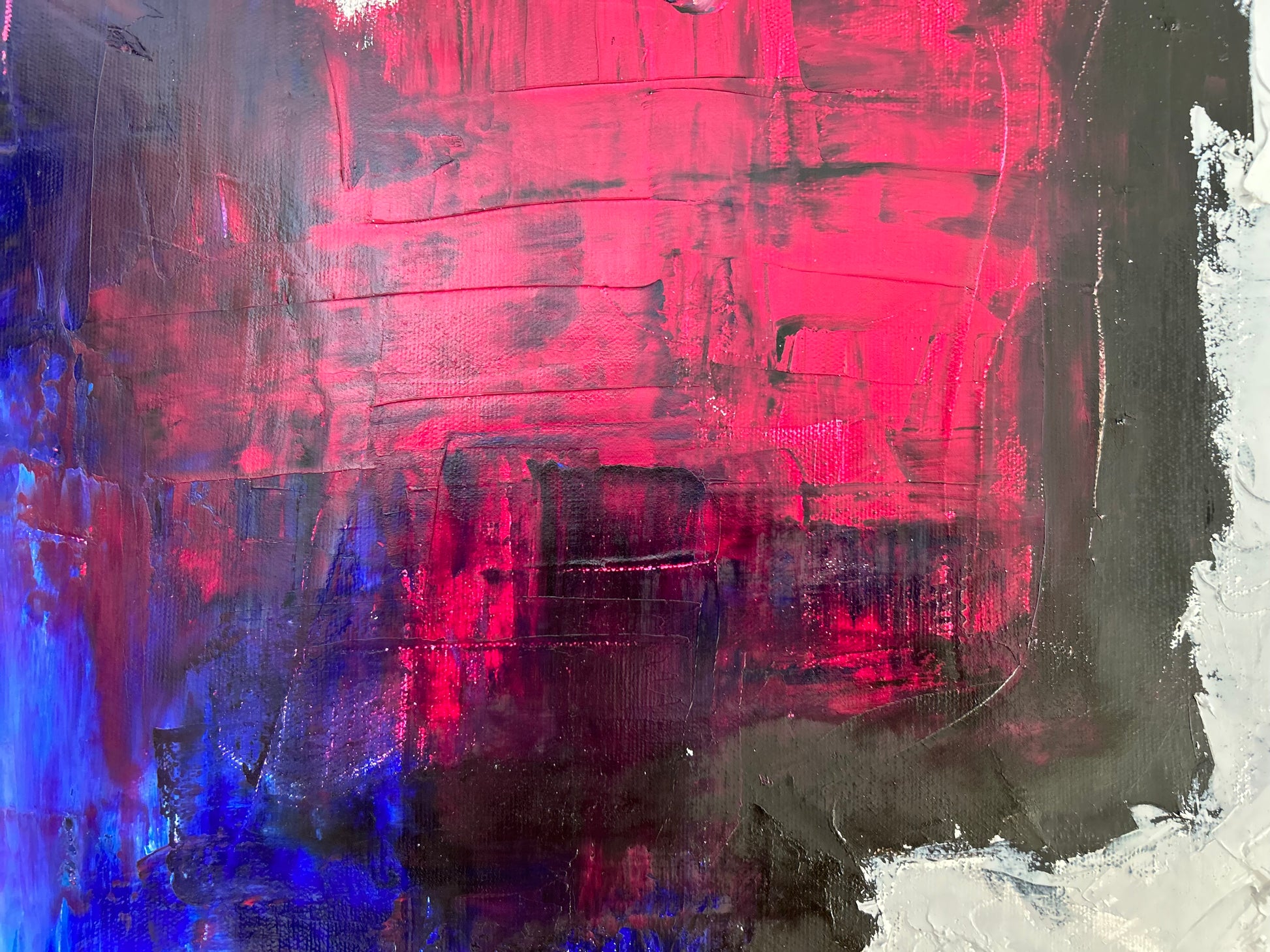 Für die Gestaltung des Unikats mit den Abmessungen 2X100x100x2cm wurden Ölfarben verwendet. Das Maltuch aus reiner Baumwolle ist auf einen robusten Holzkeilrahmen aus Kiefernholz gespannt. Das Gemälde wird ohne Schattenfugenrahmen geliefert.